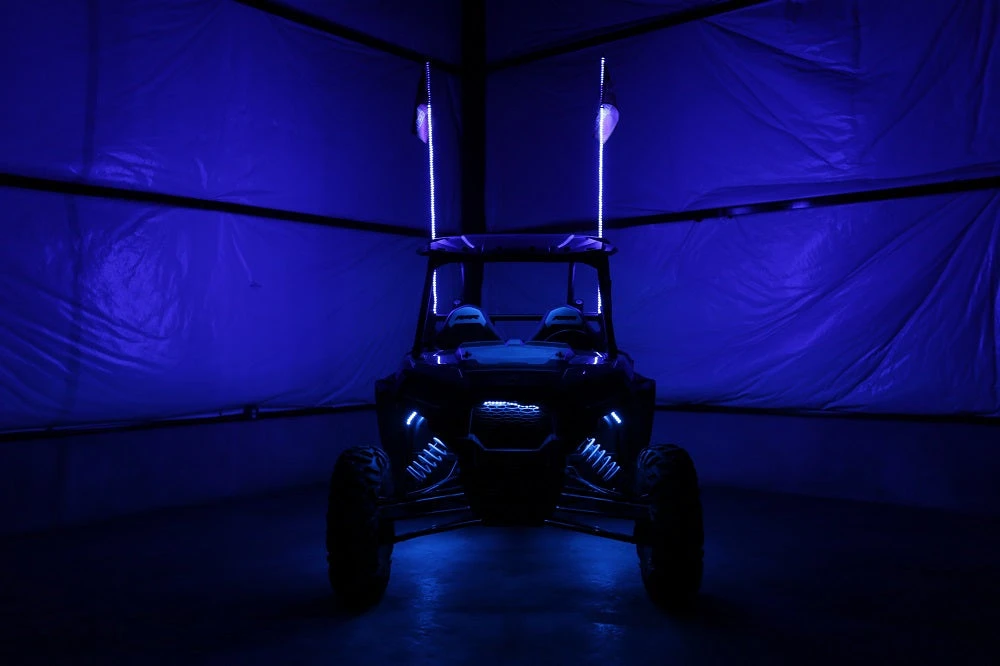 The Gorilla Whips 3′ LED Whip Xtreme is unlike any ATV whip on the market. This 3 foot LED whip has over 105 of the brightest LEDs that each change colors and settings with the simple push of a button. Light up the night sky with your choice of 20 different colors and 19 customizable settings… all on the same ATV whip! The LED Whip Xtreme also syncs with Gorilla Whips Xtreme LED Rock Light Kits and Xtreme LED Glow Kits. There’s not another ATV whip out there that can match the brightness, the color options, and the overall strength and durability of the Gorilla Whips LED Xtreme… guaranteed! Great for UTVs, RZRs, ATVs, Dune Buggy, Sand Rails, Jeeps, and everything in-between. Stronger. Brighter. Better… Guaranteed!