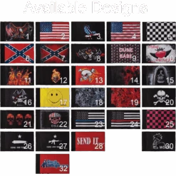 Double Guns 12″x18″Â pocket flag for 1/4″ fiberglass whips. This flag is single sided double stitched.Â
