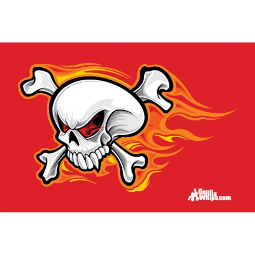 3’x5′ Flying Skull Red Safety Flag for your UTVs, SXS, RZRs, Jeeps, Trucks, Sand Dunes. These flags are 3 foot by 5 foot and are digitally printed and come with grommets on top and bottom for easy mounting. This is single sided, double stitched.
