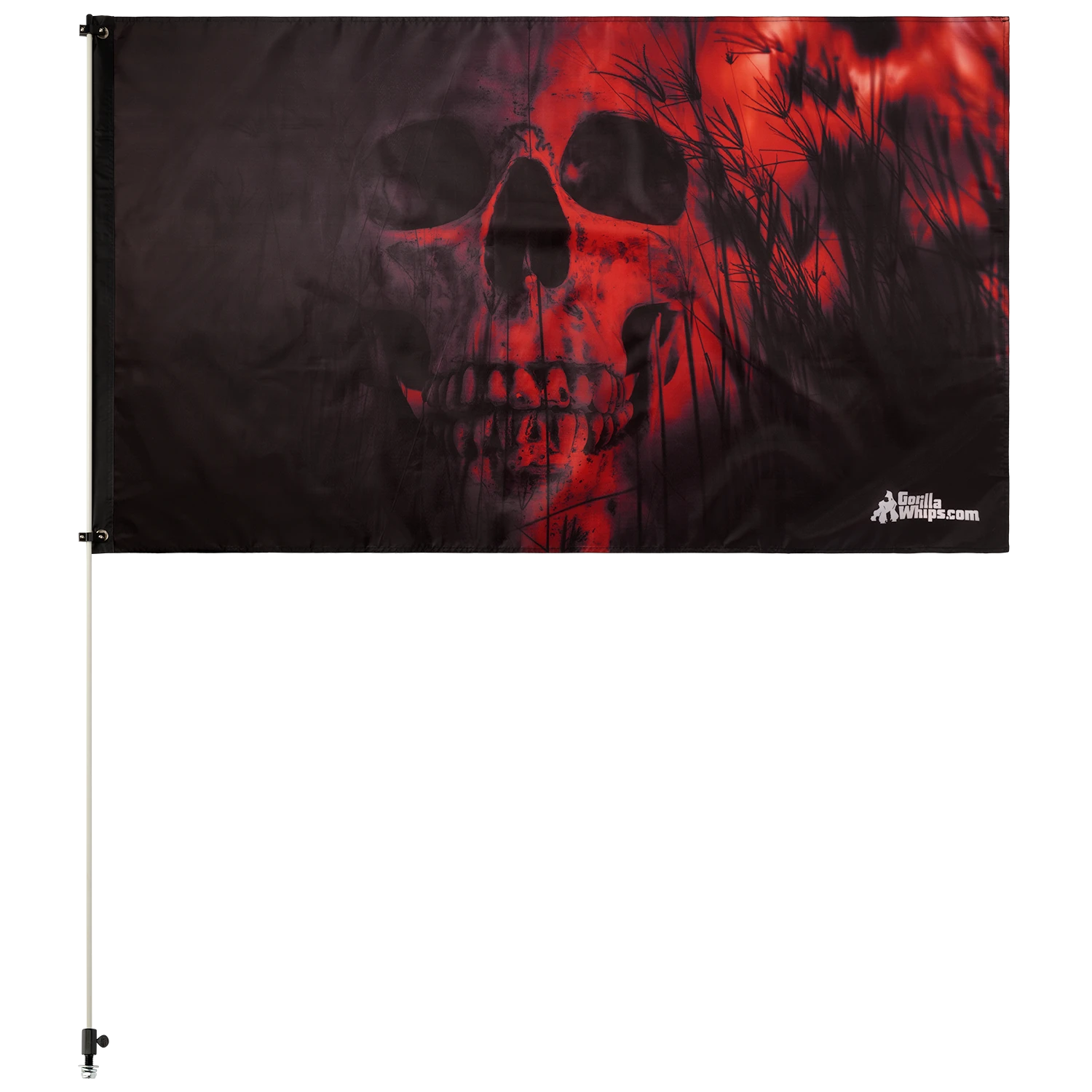 3’x5′ Red Skull Flag for for UTVs, SXS, RZRs, Jeeps, Trucks, Sand Dunes. 100D polyester fabric, single sided, double stitched. These flags are 3 foot by 5 foot digitally printed flags and come with grommets on top and bottom for easy mounting.